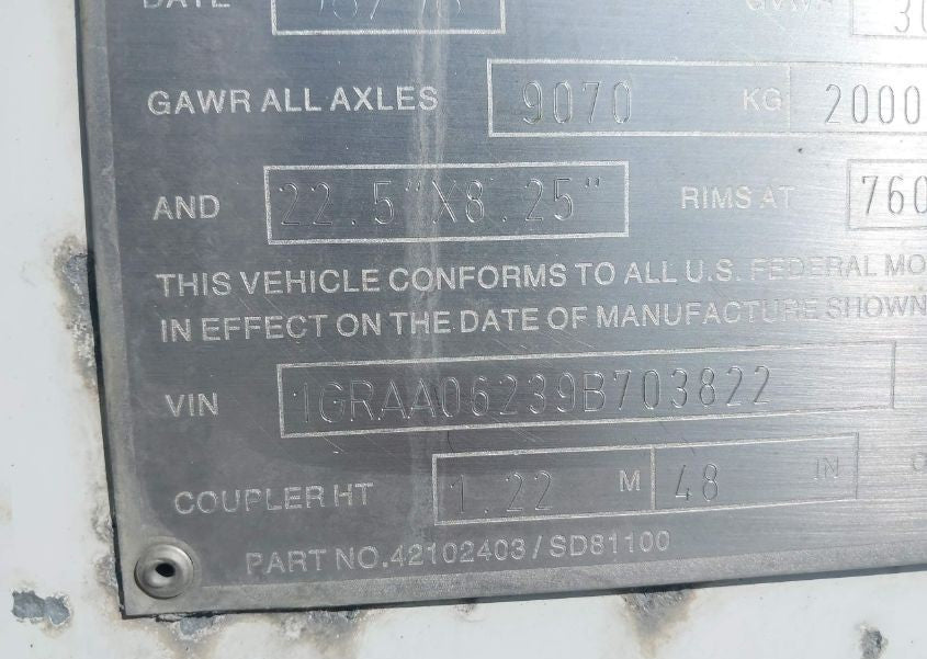 2009 Great Dane 53’ Dry Van Semi Trailer Air Ride Roll Up 102" 1GRAA06239B703822