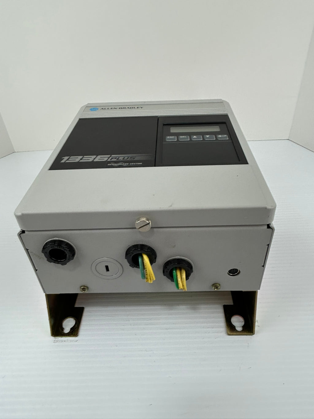 Allen-Bradley Sensorless Vector Drive Model #: 1336S-BRF10-AA-EN4-HAP1336 Plus Series D3PH Used, untested, may show some wear