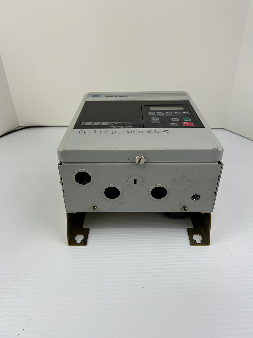 Allen-Bradley Sensorless Vector Drive Model #: 1336S-BRF15-AA-EN4-HA2-L4 1336 Plus Series E 3PH Used, tested, good working condition and cosmetic condition