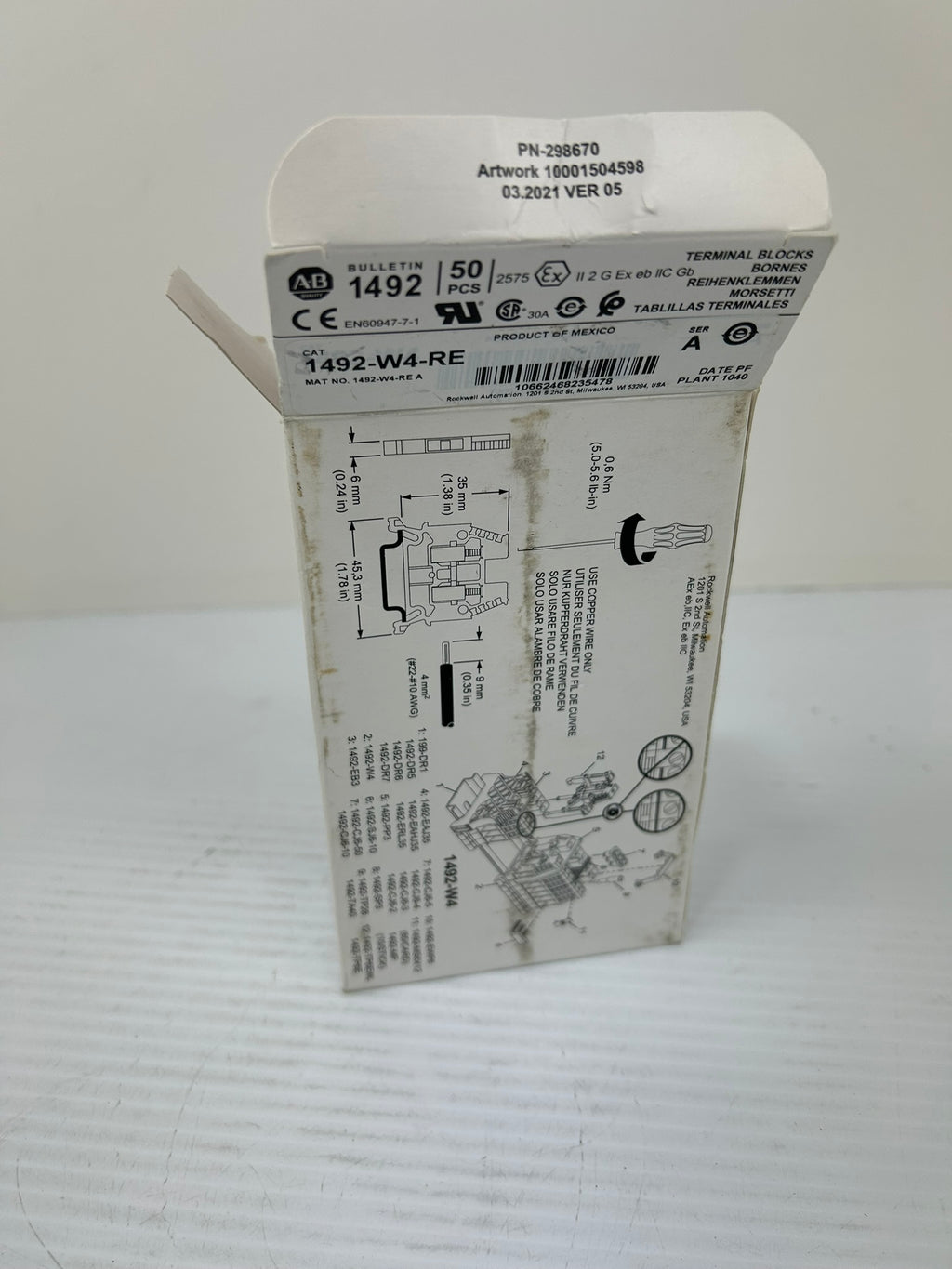 Allen Bradley Red Terminal BlocksModel #: 1492-W4-RESeries A Box of 50