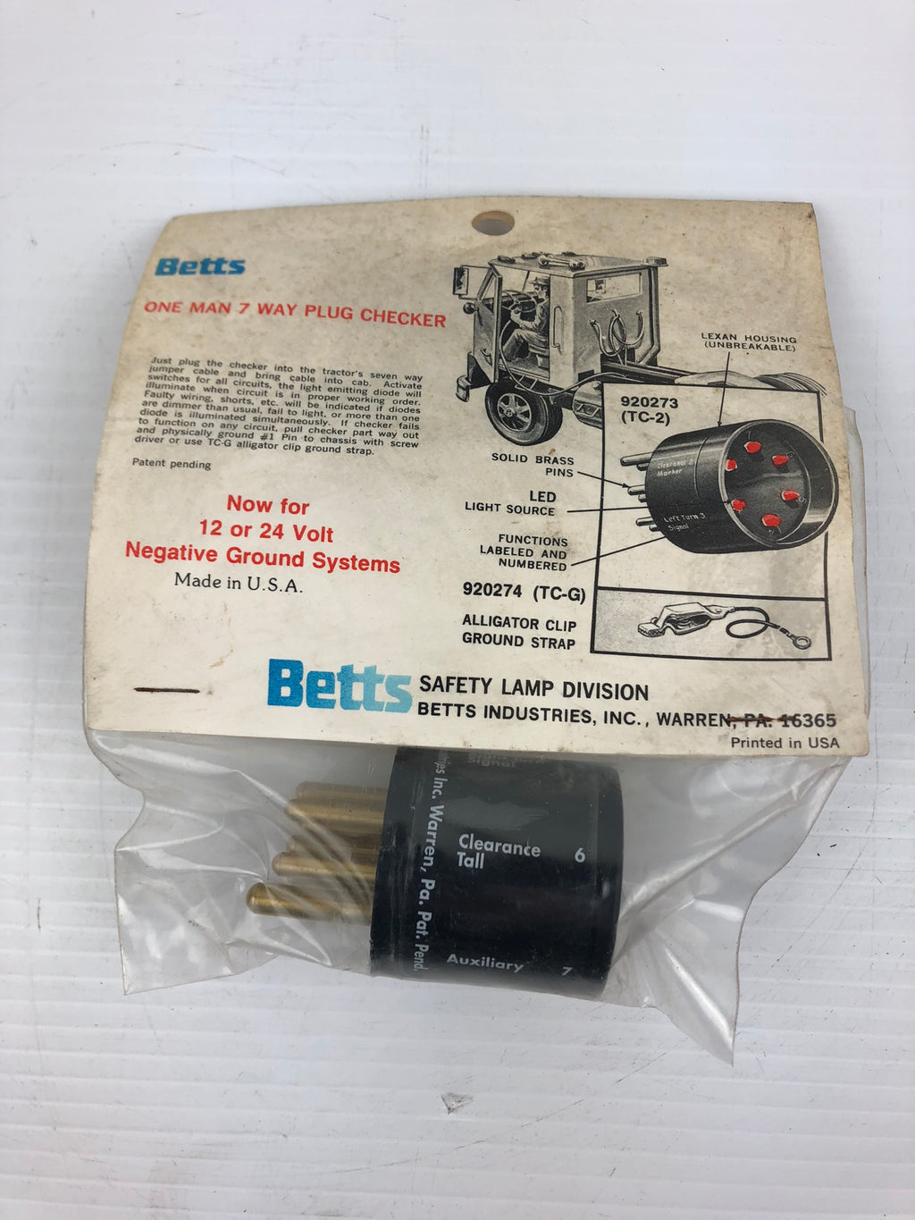 Betts Industries One Many 7 Way Plug Checker 12 or 24 VoltModel #; 920273New, old stock