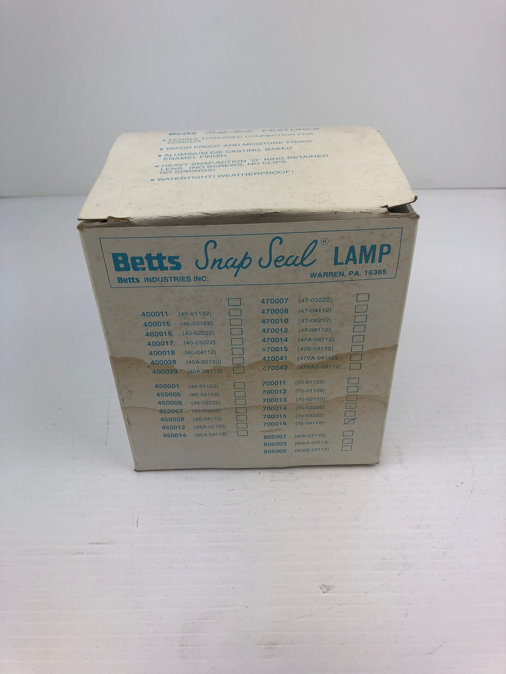 Betts Machine Snap Seal Lamp Clear Gray with Hardware SAE R-74 No, 71BUModel #: B-70New, old stock, box may show signs of wear, see picture