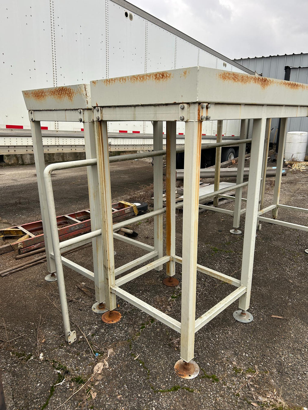 (2) Steel Platforms with Railing from Conveyor Assembly 9'9.5" x 31.5” x 5.5'