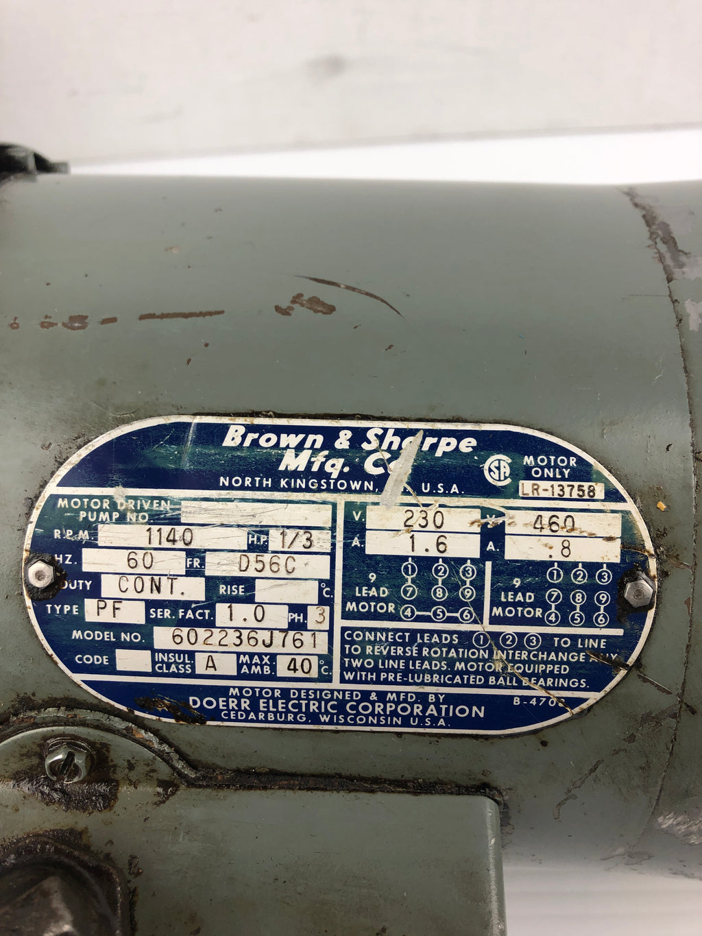 Brown & Sharpe Doerr 602236J761 AC Motor 1/3 HP 1140 RPM 3PH