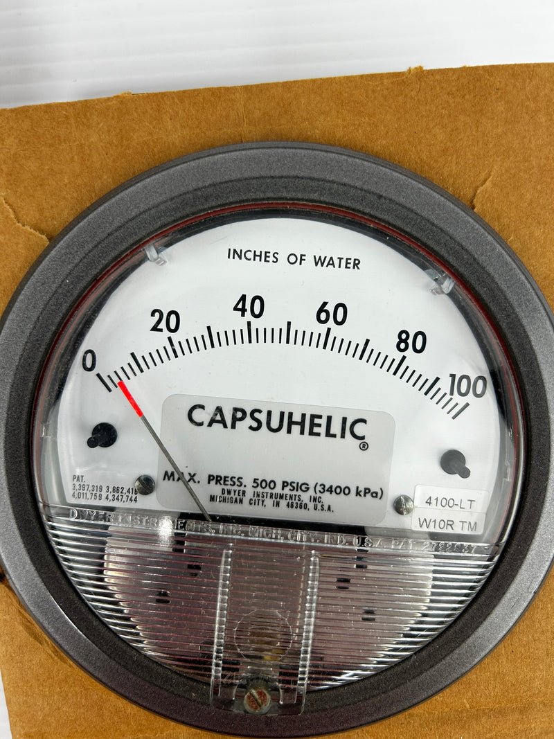 Dwyer Capsuhelic Pressure Gauge Model #: 4100-LTW10R0-100" of WaterNew, open box