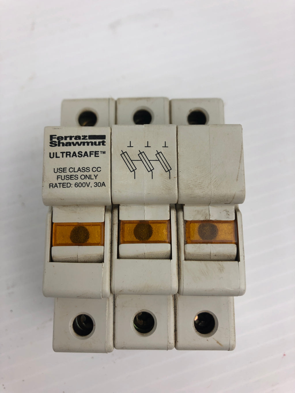 Ferraz Shawmut Fuse Holder Model #: USCC3I 600V 30A 3PUsed, untested, good cosmetic condition