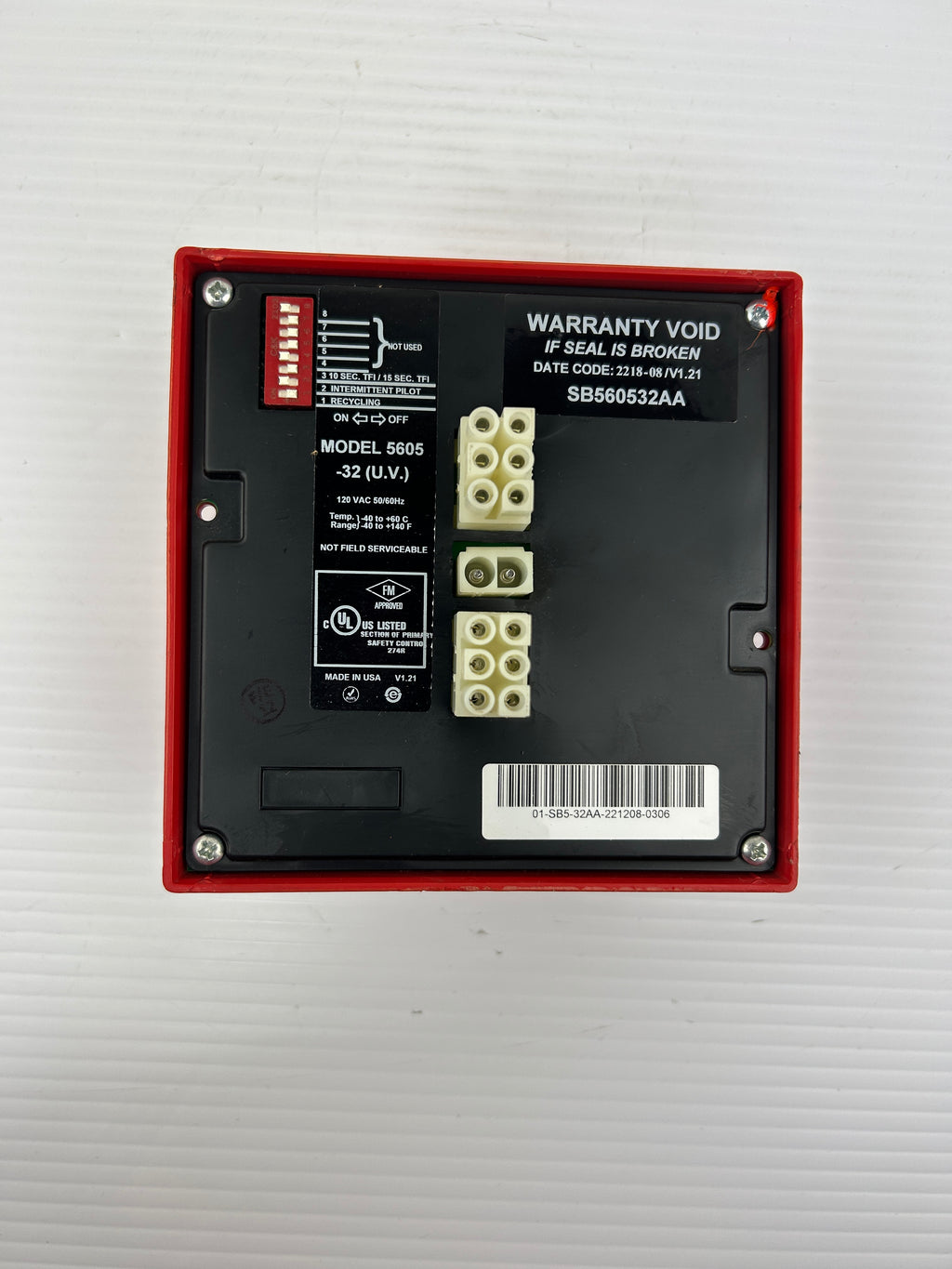 Fireye Flame Signal Rod Safety Control Model: SB560532AA 5605 -32 (U.V.)SB Series120 VAC50/60 HzV1.21Made in USAUsed, untested, shows some wear