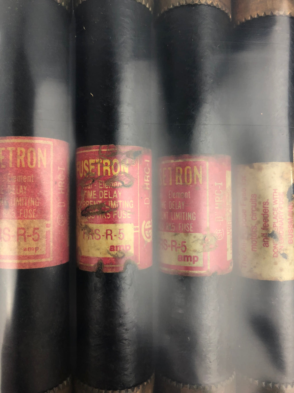 Fusetron Time Delay FusesLot of 4Model #: FRS-R-5Used, tested, in good working condition, shows some cosmetic wear