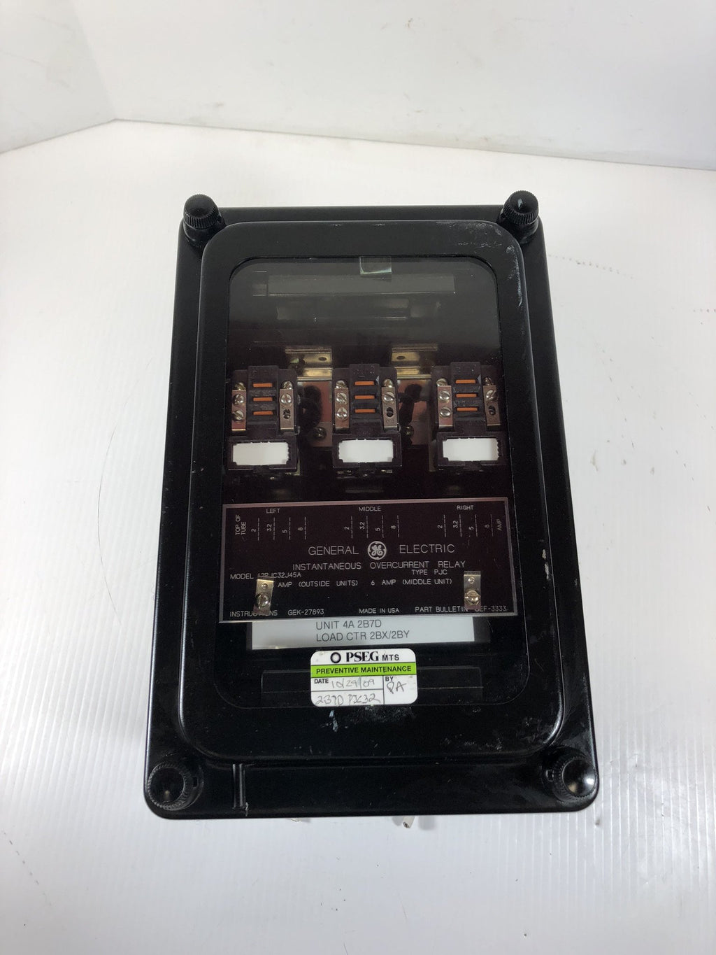 General Electric Instantaneous Overcurrent RelayModel: 12PJC32J45AType: PJC6 amp outside, 6 amp middle unitsUsed, untested, good cosmetic condition