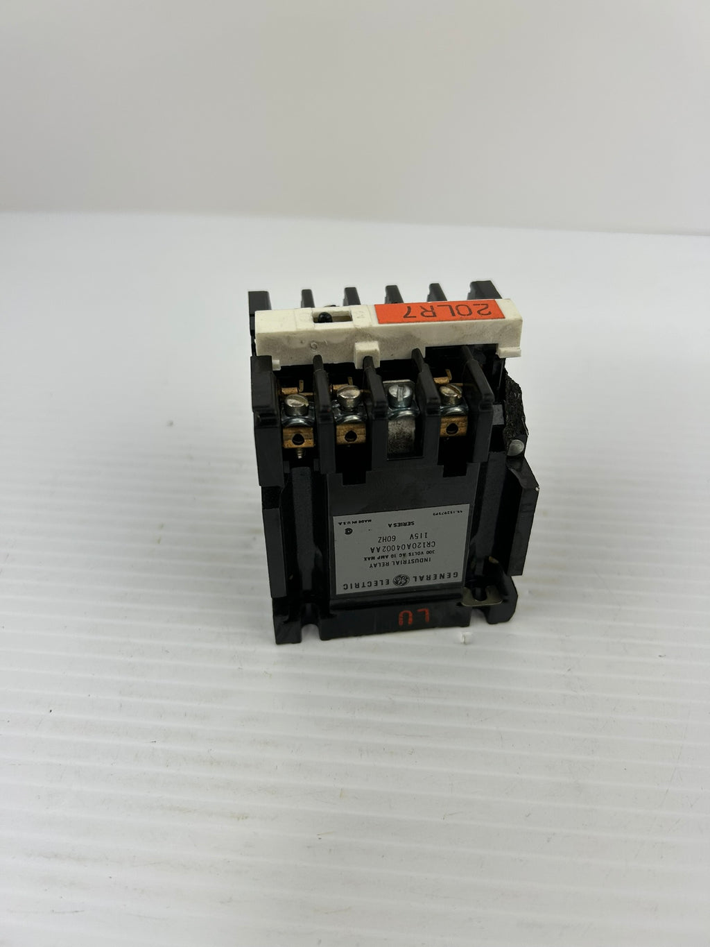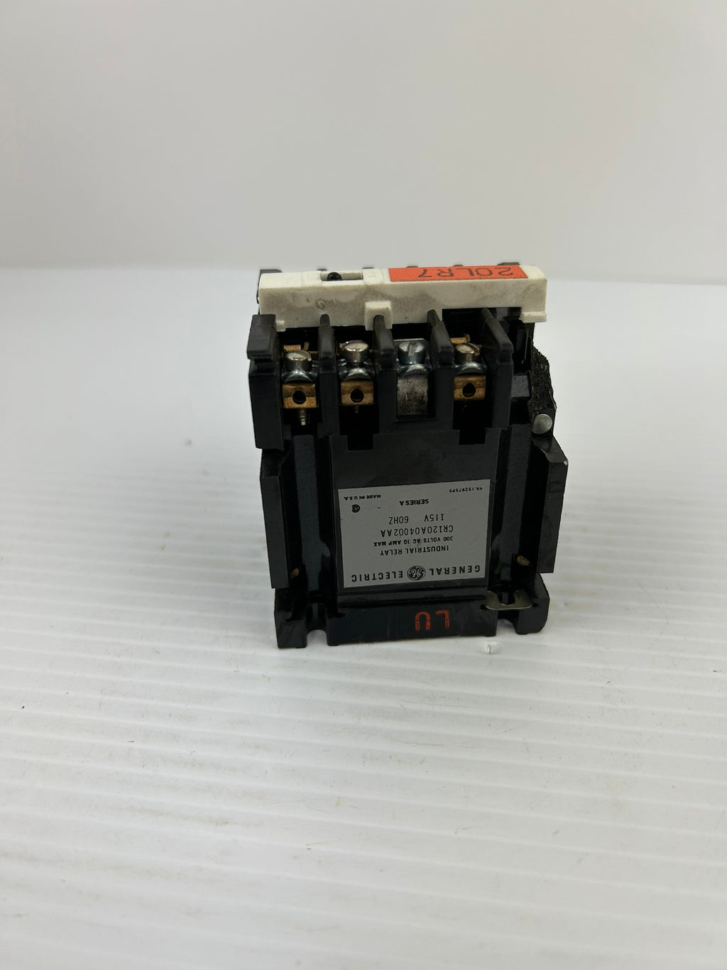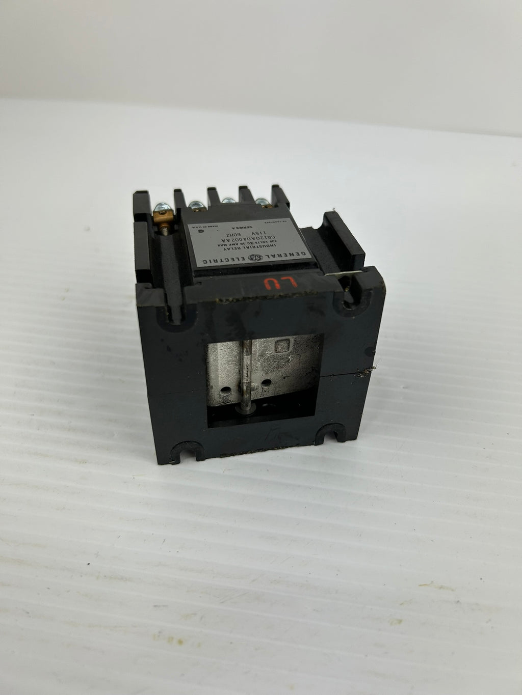 General Electric Industrial Relay Model #: CR120A04002AA Series A 300VAC 10AUsed, untested, may show some wear, broken side, please see photos