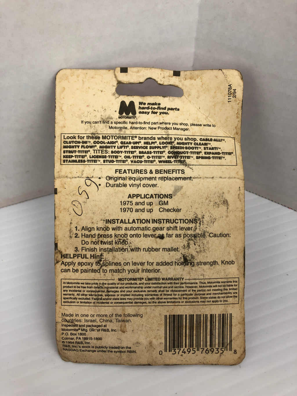 Help! Gear Shift Knob Model #: 76935 Fits: GMVarious GM Models 1975 and up Checker 1970 and up New, old stock, packaging shows some wear