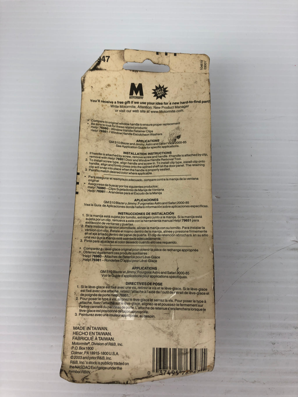 Help! Window HandleModel #: 76947 For 1985-2000: GM S10 Blazer Jimmy Astro Safari Vans New, old stock, shows some wear