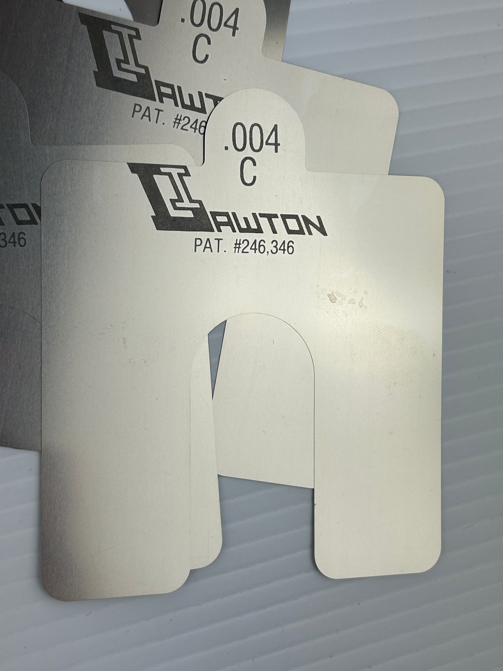 Lawton Industries Slotted Shim Model #: 9999999300Pat. #: 246,346Size C 0.004Box of 25New