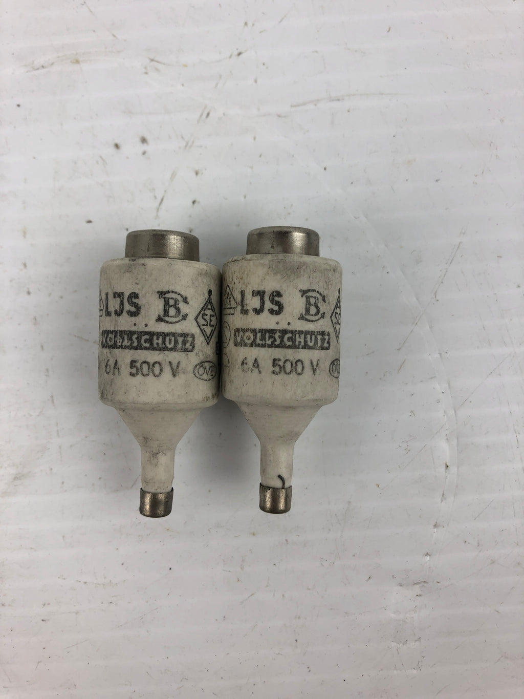 LJS Vollschutz Fuses6A 500V Lot of 2Used, tested, shows some wear