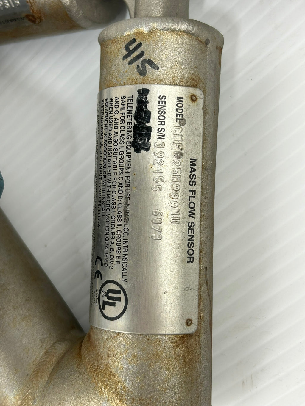 Micro Motion Mass Flow SensorModel #: CMF025H999NUUsed, untested, good cosmetic condition