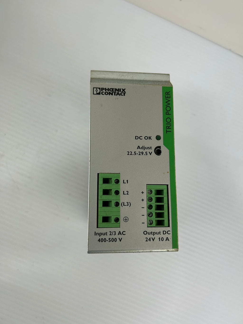 Phoenix Contact Power SupplyModel #: 2866459TRIO-PS/3AC/24DC/10Used, untested, good cosmetic condition, pulled from a working facility.