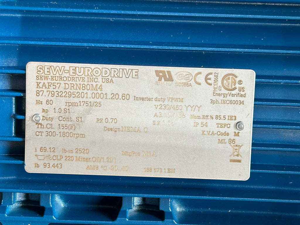 SEW-Eurodrive Servo MotorModel #: KAF57 DRN80M41751/25 RPM 1HP 3PH 230/460VNew, open box