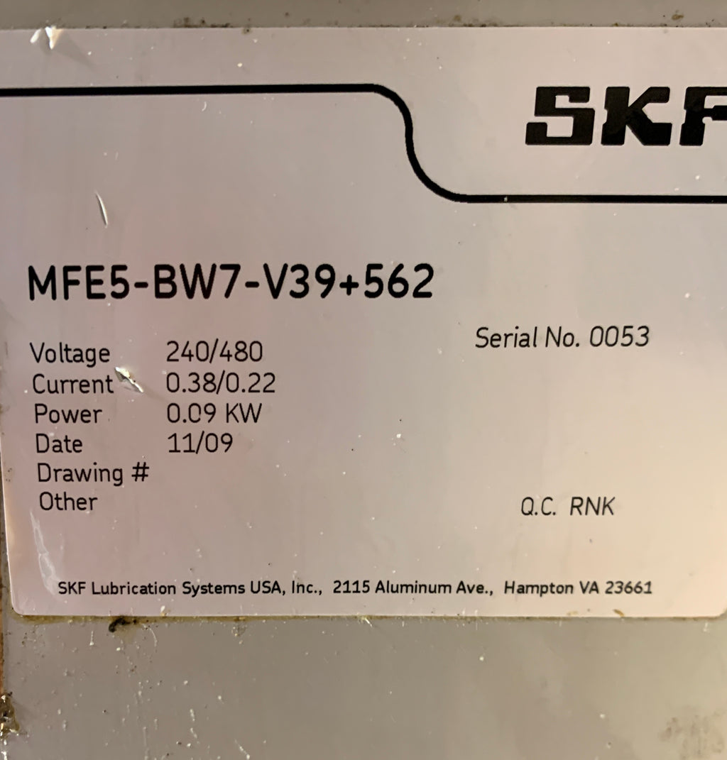 SKF Vogel Pump Regulator System Model: MFE5-BW7-V39-562Voltage: 240/480Current: 0.38/0.22Power: 0.009 KWDate: 11/09Used
