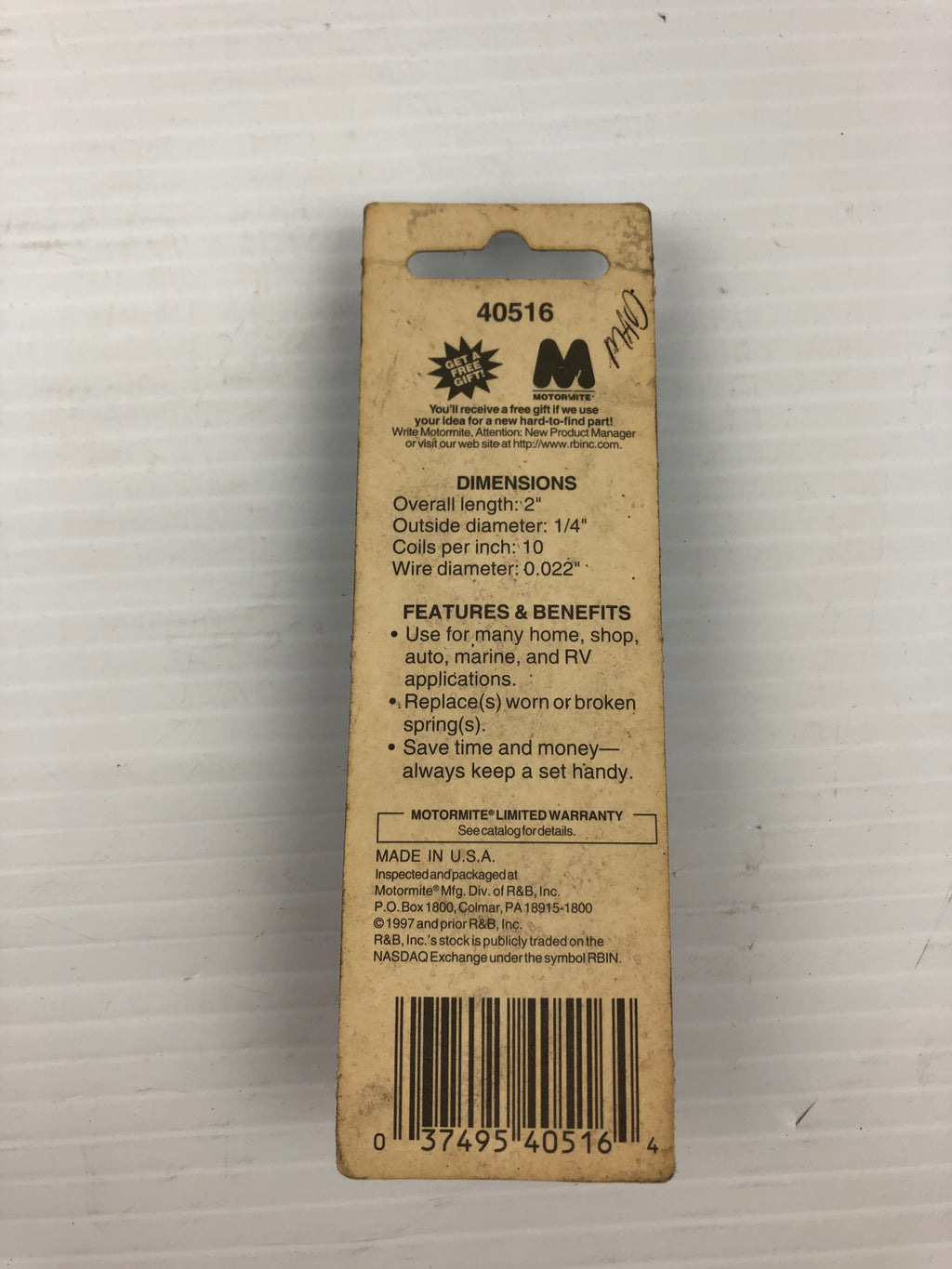 Spring-Tite Compression SpringModel #: 40516Box of 2New, old stock