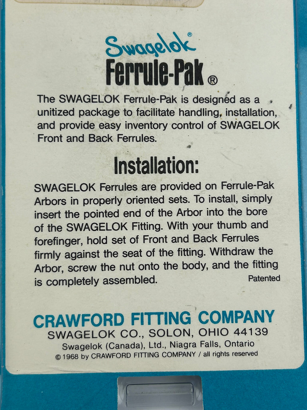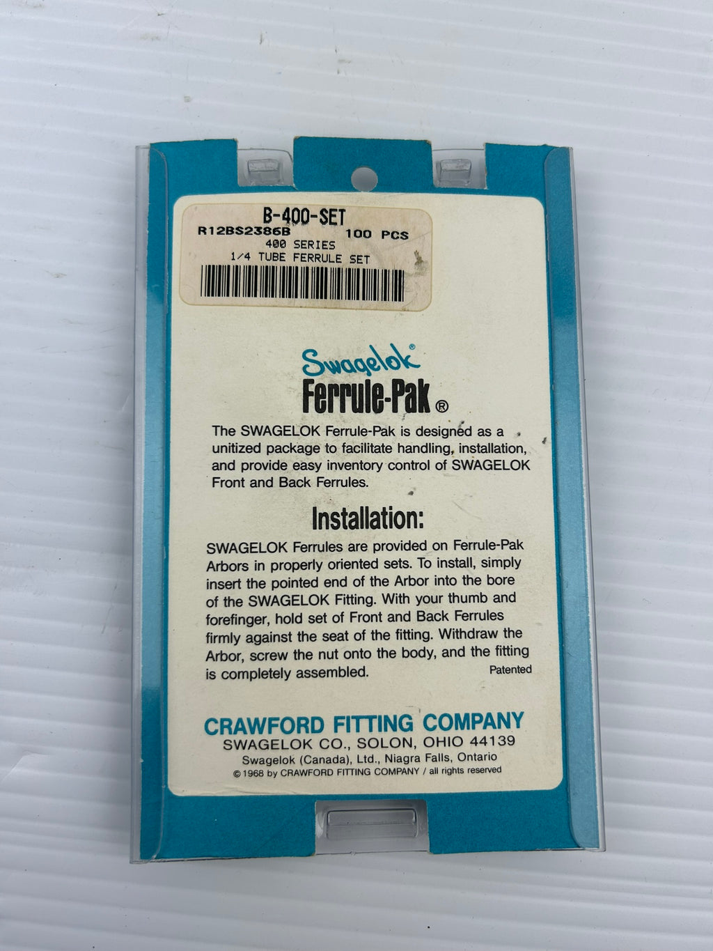Swagelok Brass 1/4 Tube Ferrule SetModel #: B-400-SET400 Series Lot of 61New, open package